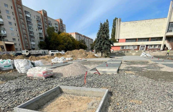 Роботи з реконструкції площі перед Палацом урочистих подій тривають