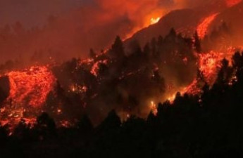 Річка розпеченої лави з вулкана Кумбре-В’єха на іспанському острові Ла-Пальма в понеділок розширилася після того, як минулої ночі обвалилася північна сторона кратера, викликавши вражаючі вибухи, але влада виключила подальшу евакуацію мешканців.