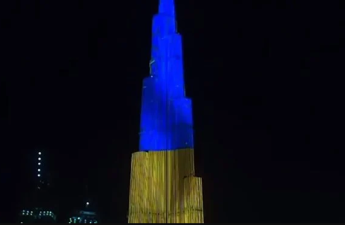 Найвищий хмарочос у світі підсвітили кольорами українського прапора