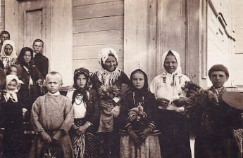 Посвячення земних плодів на Спаса біля Свято-Преображенського храму у селі Куснища на Любомльщині. Фото 1917 року опублікував д...