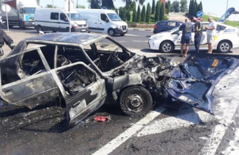 Поблизу села Панталія Дубенського району сталася подвійна аварія. Один автомобіль загорівся