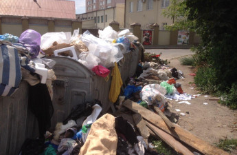 Неподалік центру – на вулиці Івана Франка – комунальники невчасно вивозять тверді побутові відходи, внаслідок чого навколо майданчика з контейнерами виникають гори сміття