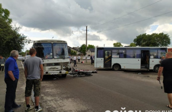 У Рожищі після обіду 9 липня на дорозі навпроти автостанції сталась дорожньо-транспортна пригода за участі маршрутних таксі та мотоцикла.