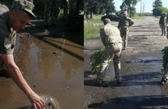 Волинські військові пояснили, навіщо пляшками вичерпували воду з калюж
