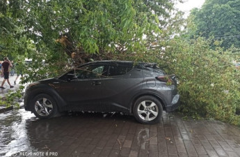 На вулиці Лесі Українки у Луцьку від великого дерева відламалася гілка та впала на автомобіль