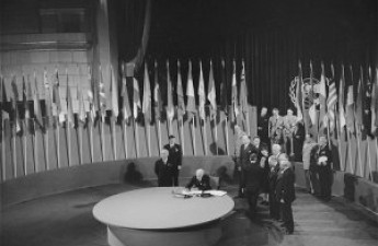 Статут Організації Об'єднаних Націй підписали у Будинку ветеранів в Сан-Франциско 26 червня 1945 року. Серед 50 країн-підписантів б...