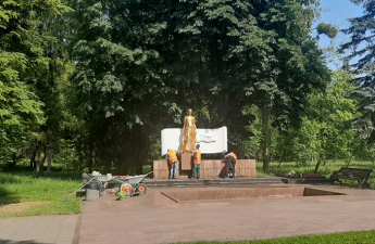 Комунальні служби міста оперативно знищили сліди ганебних надписів про наркотики на скульптурі молодої Лесі Українки в Центральному парку Ле...