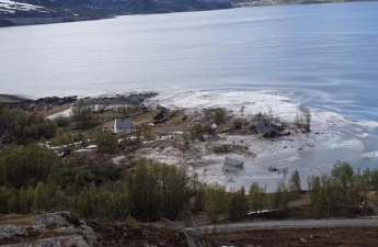 У море були знесені вісім будинків потужним зсувом шириною більш як 600 метрів і висотою понад 120 метрів. У Норвегії на мисі Кракнесет великий зсув зніс у море вісім будинків