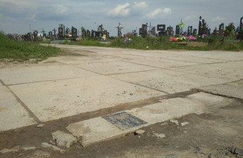 На луцькому кладовищі яму на дорозі «залатали» надгробною плитою. Фото