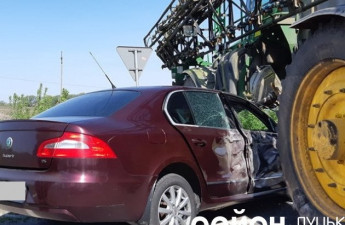 Під Луцьком зіткнулись легковик та самохідний обприскувач. Фото