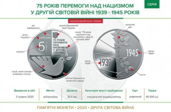 З 5 травня НБУ вводить в обіг нову монету номіналом 5 гривень, присвячену увічненню пам'яті і перемозі у Другій світовій війні, яка трив...