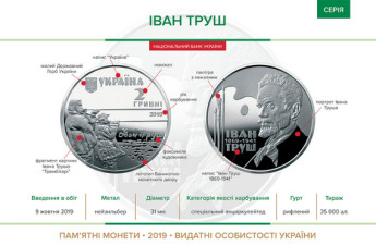 9 жовтня 2019 року пам'ятна монета "Іван Труш” вводиться в обіг. Про це повідомляє Гал-Інфо із посиланням на...