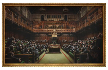 Картина знаменитого вуличного художника Бенксі, яка зображує депутатів Палати громад британського парламенту як шимпанзе, буде вис...