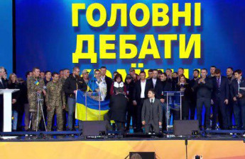 У Києві на стадіоні «Олімпійський» відбуваються дебати кандидатів у президенти Петра Порошенка і Володимира Зеленського. Згідно з результатами жеребкування, першим виступав Володимир Зеленський