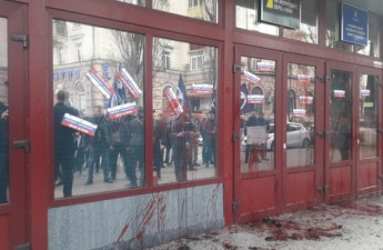 У вівторок, 12 березня, будівлю Національного антикорупційного бюро закидали яйцями і облили тваринною кров’ю
