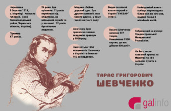 Інформаційна агенція Гал-інфо напередодні 205 річниці від дня народження Тараса Шевченка підготувала інфографіку про його життєвий шлях. ...