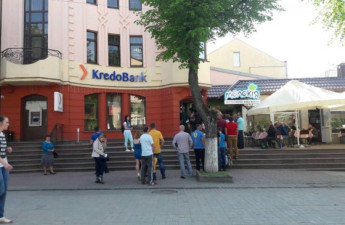 Волиняни з самого ранку утворили довжелезну чергу перед входом до «Кредобанку»