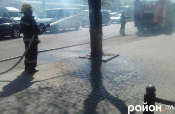 У Луцьку поблизу Старого ринку невідомі підпалили дерево. На місці вже працюють пожежники