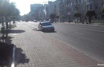 У центрі Луцька досі стоїть автомобіль, який постраждав під час аварії 1 серпня
