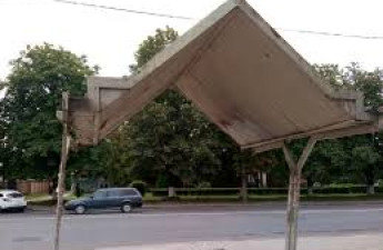Зупинка громадського транспорту на вулиці Рівненській у Луцьку похилилася й знаходиться в аварійному стані