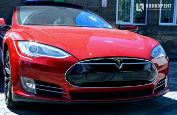 Увагу лучан привернув яскраво-червоний електромобіль Tesla model S