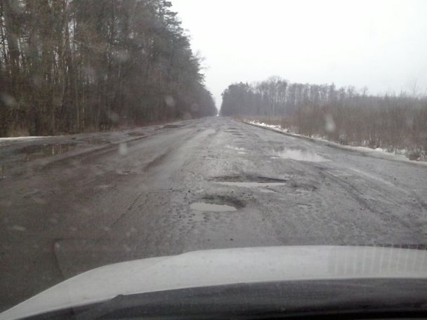 Читач ТСН.ua, який відправив фото, констатує, що дороги більше взагалі не існує. «Є напрямок, який складається з ґрунтовки, вибоїн. Ями більшого або меншого розміру чергуються зі шматками асфальту і колишнього твердого покриття по всьому державному маршруту. На цьому тлі глузуванням звучать заява «Укравтодору» про те, що залишилося тільки 60 км державних доріг залатати від дірок», - повідомив читач.