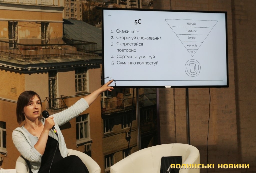 «Скажи «ні»»: пропонують відмовитися від пакетиків, трубочок, паперових стаканів з шаром поліетилену всередині, одноразових пляшок, більшості одноразових речей, що оточують нас щодня. Анна Понікарчук розповіла, що у першу чергу в своєму житті стала відмовлятися від візитівок і тепер просто фотографує їх на телефон замість того, щоб приносити сміття додому. Також сказати «ні» можна рекламним листівкам, тобто «ні» вирубуванню нових дерев, як пояснює Анастасія Мартиненко.