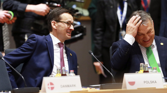 Наразі на захист Польщі стала Угорщина, виступивши проти такого кроку. Це означає, що Будапешт може заблокувати рішення ЄС. Та якщо під час голосування Угорщина утримається, це розцінять як відсутність спротиву і санкції накладуть остаточно.На захист Польщі стала Угорщина, виступивши проти санкцій ЄС. На фото — прем'єр-міністр Польщі Матеуш Моравєцький та прем'єр Угорщини Віктор Орбан під час засідання Європейської ради 14 грудня 2017 року. Фото: EPA-EFE/OLIVIER HOSLET / POOL