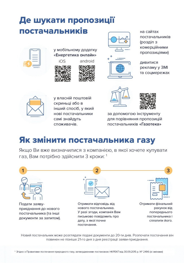 Отже, якщо ви вирішили таки пошукати альтернативу своєму постачальнику газу, треба довідатися, хто ще які пропонує варіанти. Теоретично, одночасно зі стартом ринку газу для населення, держава мала б створити спеціальний електронний майданчик, де будь-який споживач може подивитися пропозиції від постачальників.