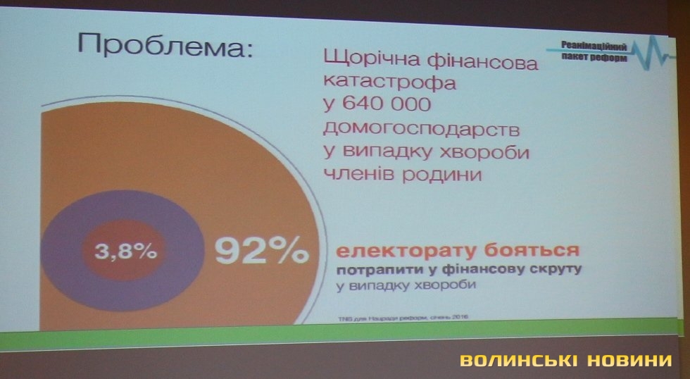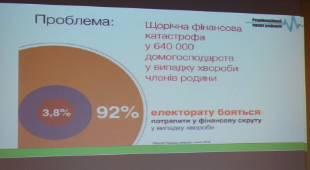 Внаслідок цього, 3,8% громадян на рік зазнають катастрофічних втрат через витрати на лікування, ще 10-12% стикаються з такими проблемами у родичів, колег та сусідів, 92% українців бояться потрапити у фінансову скруту у випадку хвороби.