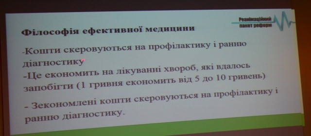 Оскільки кількість звернень в стаціонар з серцевими ускладненнями знизилася, побачили, що великої кількості стаціонарних ліжок просто не потрібно. Головний лікар районної лікарні скорочував кількість ліжок, спрямовуючи бюджет у «первинку», підвищуючи зарплату лікарям «первинки». Таким чином, відбувся перерозподіл коштів з неефективного стаціонару.