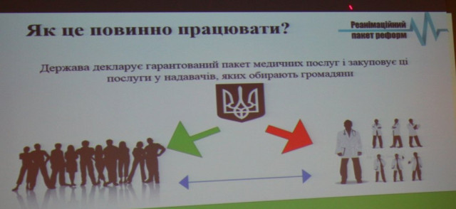У цивілізованому світі держава декларує пакет медичних послуг і закуповує їх в надавачів цих послуг. Своєю чергою, громадяни обирають самі тих, у кого держава повинна купити послуги. У цьому полягає принцип «гроші ходять за пацієнтом». Нині використання державних коштів для системи охорони здоров’я є вкрай неефективним. Зараз держава утримує величезну систему, регулює її в ручному режимі, а цивілізована конкуренція в системі охорони здоров’я України наразі відсутня. Отже, державні кошти потрібно використовувати ефективніше. Для цього державі потрібно задекларувати гарантований пакет медичних послуг, дати можливість цей пакет закуповувати в тих, кого обере сам громадянин. Тобто, держава оплачуватиме контракт з тим лікарем, якого обере пацієнт замість оплати мережі лікарів і зобов’язання пацієнта ходити до лікаря за географічним принципом.