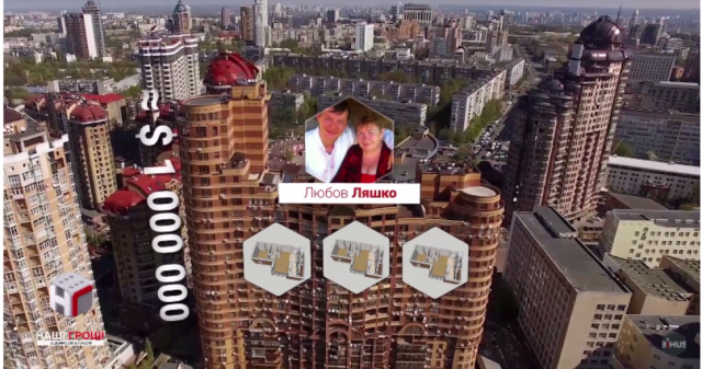 За оцінкою ріелторів, на момент зведення будинку, вартість одного квадратного метру сягала трьох тисяч доларів. Тобто, за триста квадратних метрів матір нардепа мала б викласти близько мільйона доларів. Вже за рік жінка продає усі три квартири. Одну з них - за копійчаною ціною у 120 тисяч гривень - куму й першому заступнику Ляшка - Юрію Сухіну.