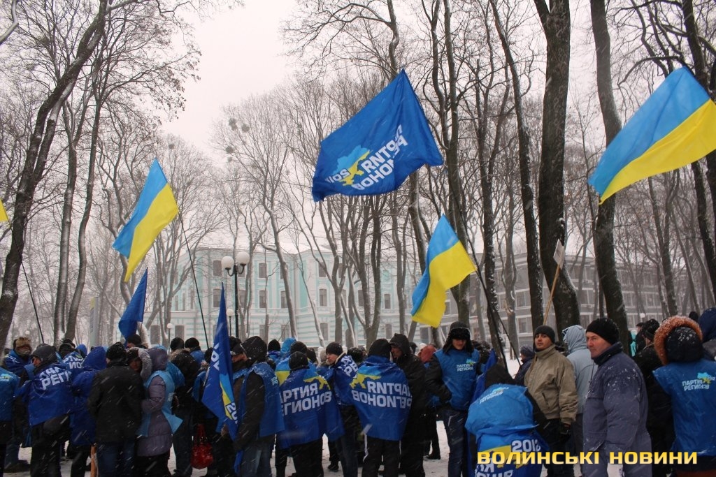 Мітинг Партії регіонів відбувся у Маріїнському парку неподалік будівлі Верховної Ради України. Територія, на якій відбувався захід, була огороджена, а входи ретельно охоронялися міліцією. Правоохоронці не впускали на територію пересічних киян і гостей столиці. Загалом, складалося враження, що влада очікує масової атаки терористів на своїх прихильників – кількість правоохоронців у Маріїнському парку вражала, постійно приїздили нові автобуси з представниками внутрішніх військ. Так, вулиця Грушевського була перекрита автобусами та кордоном з представників внутрішніх військ. Навпроти них свої барикади встановили євромайданівці. Серед євромайданівців панувала дружня та доброзичлива атмосфера, у динаміках лунали українські пісні, під які танцювали мітингарі. Дехто з представників протилежного табору, які сумовито стояли з прапорами Партії регіонів за міліцейським кордоном, також намагався танцювати під цю музику.
