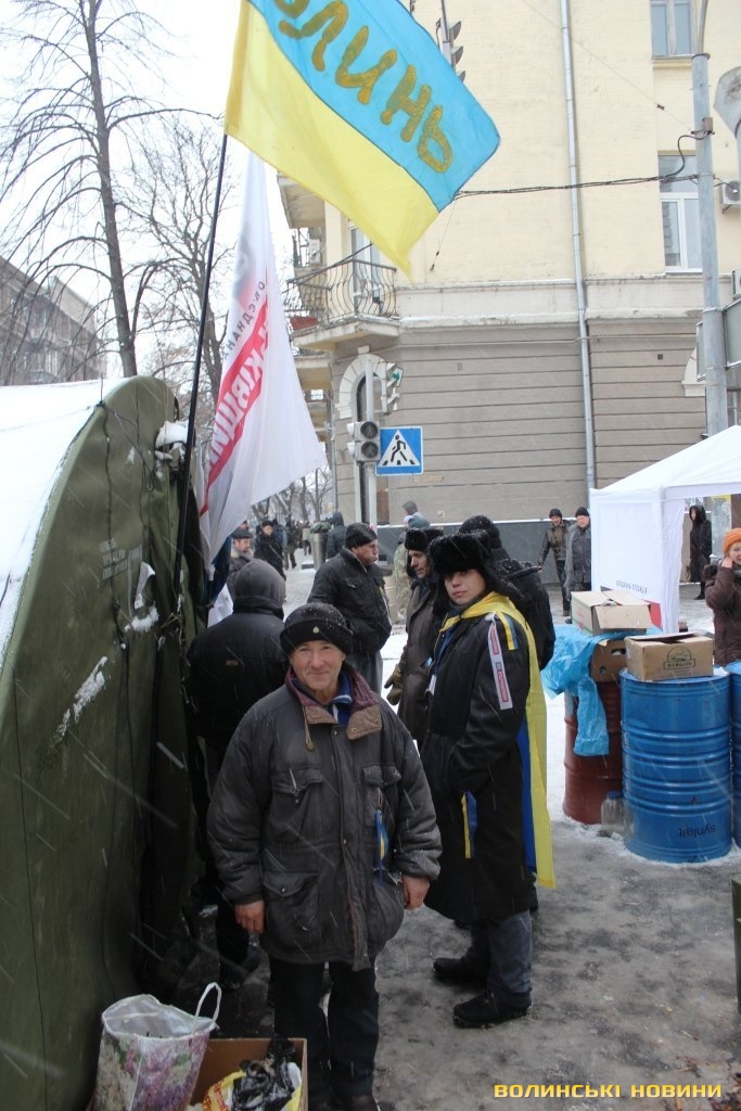 Ковельчанин Сергій Іванович вже протягом тижня мешкає у наметах. Він пікетував органи державної влади, брав участь в різноманітних мирних акціях протесту, перебував на Майдані Незалежності, а згодом, разом із земляками-волинянами оселився у наметі, що на Кріпосному провулку.