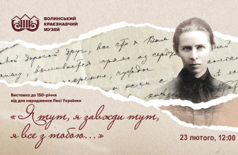 23 лютого 2021 р. о 12.00 у Волинському краєзнавчому музеї відбудеться презентація виставки «Я тут, я завжди тут, я все з тобою...», присвяченої 150-річчю від дня народження Лесі Українки.