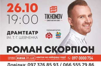 Концерт відомого співака, ведучого та композитора Романа Скорпіона відубдеться 26 жовтня о 19:00 у Волинському обласному академічному музично-драматичному театрі імені Тараса Шевченка.