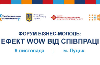Форум «Бізнес-молодь: ефект WOW від співпраці» відбудеться 9 листопада у Луцьку в рамках ініціативи «Український пакт заради молоді-2020»