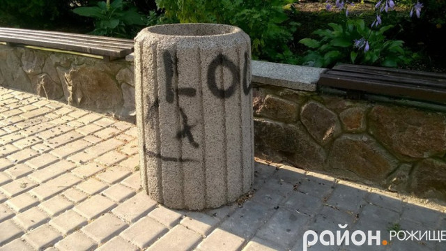 Зазначимо, що смітник з бетону досить важкий, і попри це вандали умудрилися його підняти та розбити.