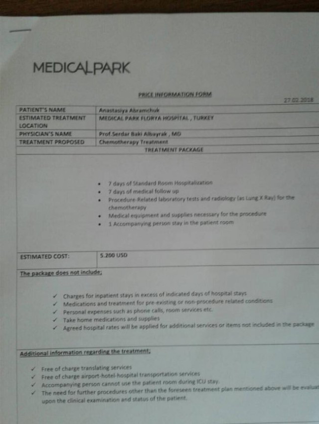 "Лікарі MEDICALEPARK проводять Настусі імуно - і хіміотерапію. Імуно препарати будуть вводитися за певною схемою і вони неймовірно дорогі...