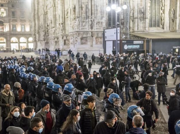 У Мілані, пише Corriere della Sera, демонстрацію незадовго після початку заблокували і людям не дали зібратися на Piazza Fontana, як планували організатори. Правоохоронці просили людей розходитися, а у найбільш обурених перевіряли документи.