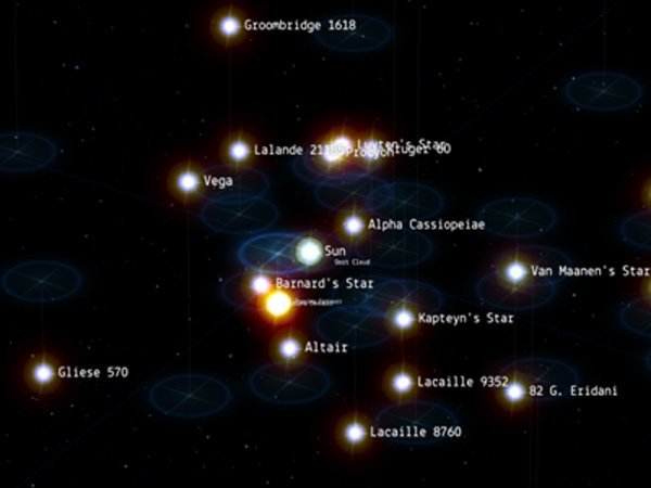 Всередині - дуже багато зірок. Між ними можна подорожувати і, таким чином, оцінювати масштаби всесвіту. Польоти між зірками можна здійснювати мишкою.