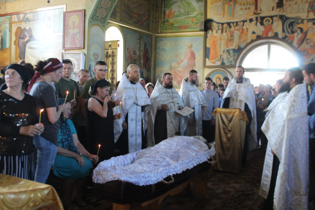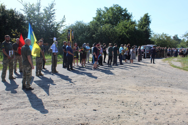 Сьогодні мешканці громади стоячи на колінах прощалася з захисником. Чин похорону звершили священики у Свято-Миколаївському храмі. Поховали бійця з усіма почестями під залпи пострілів почесної варти та звуки духового оркестру на кладовищі у Цмінах.
