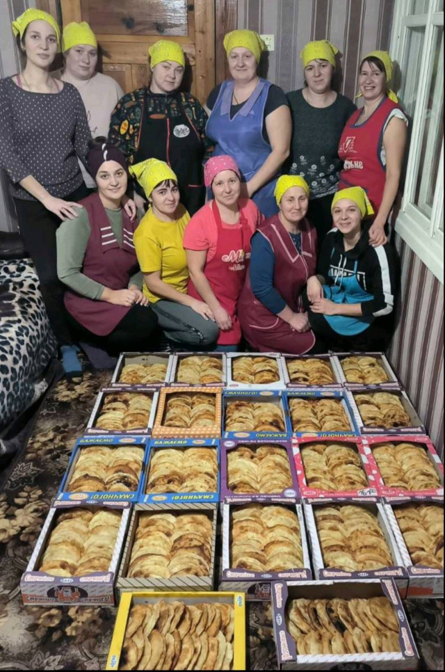 Ми складаємо їх у коробки, «екранами» називаємо. У середньому 20 коробок, хоча було, що і 25 коробок відправляли. Приблизно 25-30 кілограмів борошна використовуємо за один раз. І місимо тісто руками. Начинку готує кожна вдома. Вже наловчилися. Кожна знає, що і як. Та й люди – і заболоттівчани, і з сусідніх сіл підтримують. Восени розміщую оголошення у Фейсбуці про збір капусти на квашення для того, щоб потім зробити начинку для чебуреків. Жителі громади активно допомагають. Готуємо половину зі смаженою квашеною капустою, а половину з фаршем.
