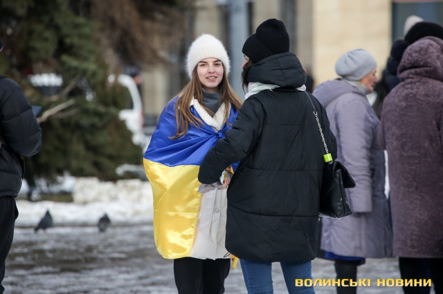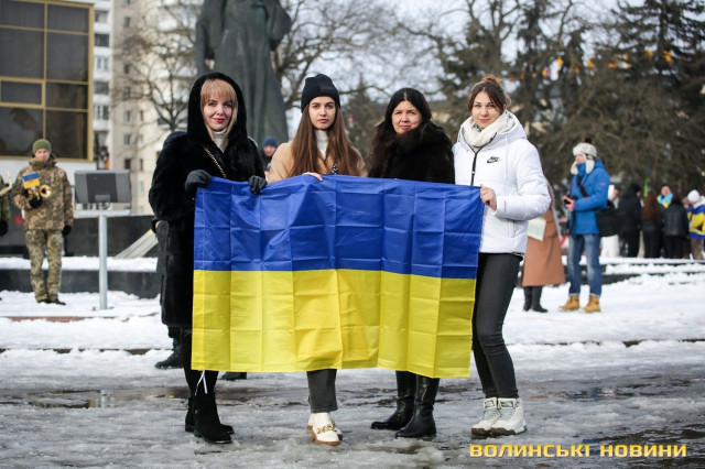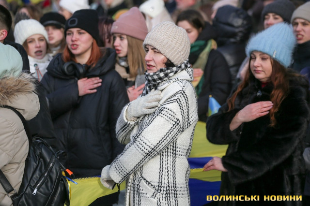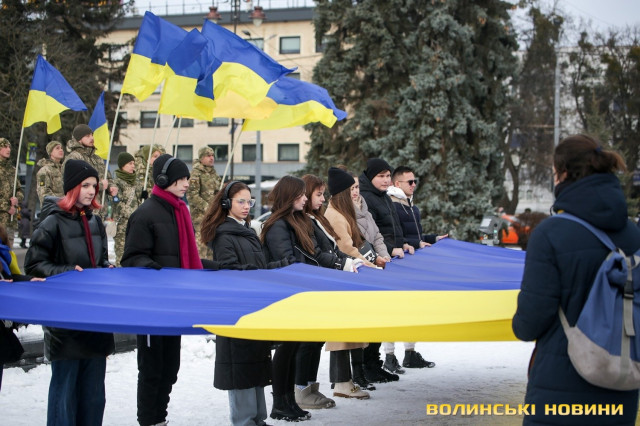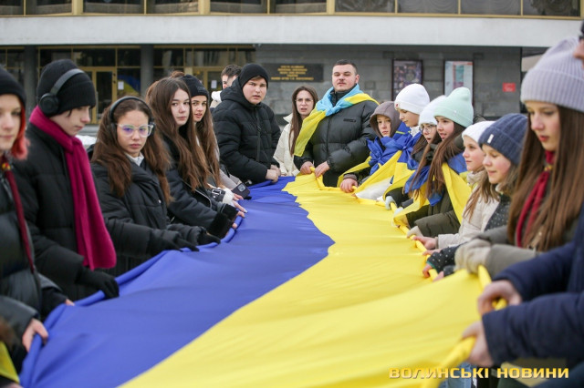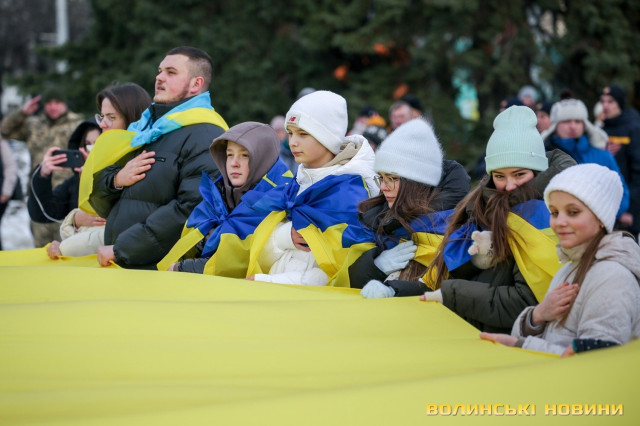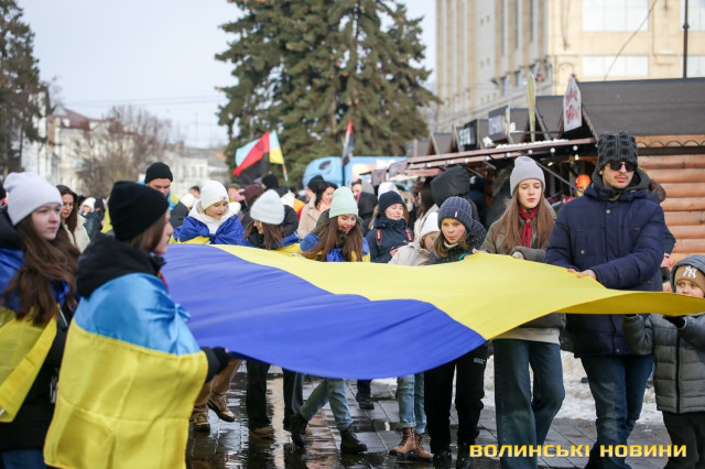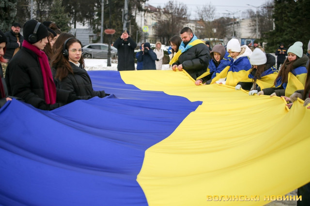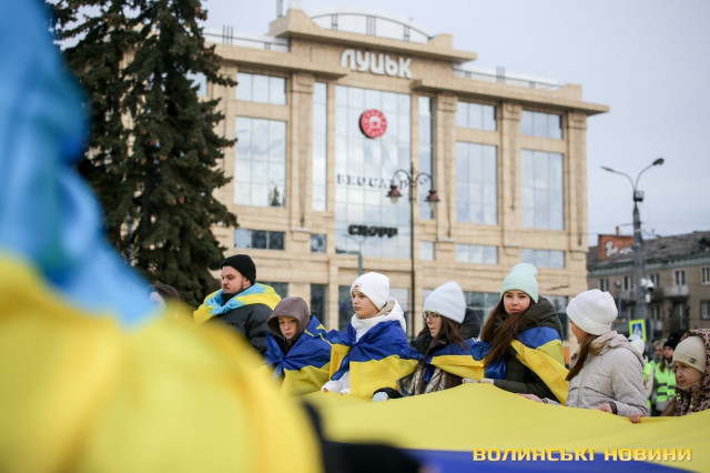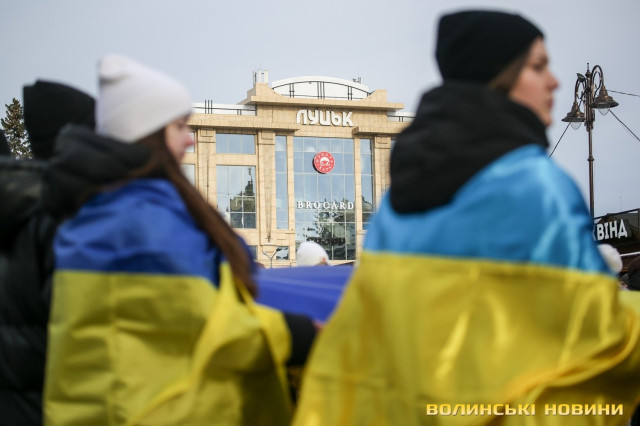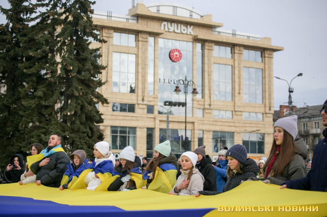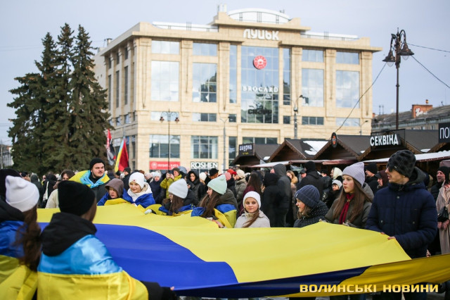 З цієї нагоди в Луцьку відбулася акція «Ланцюг єднання», під час якої учасники розгорнули двохсотметровий український прапор та пройшли патріотичною ходою від Театрального майдану до площі Злуки.