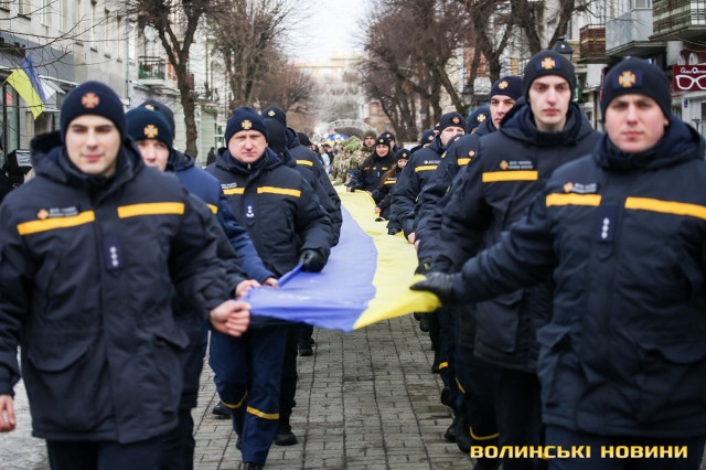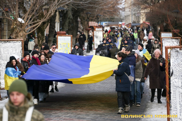 200-метровий український прапор та патріотична хода: у Луцьку відзначили День Соборності. Фоторепортаж