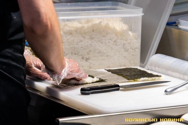 «Ми дуже швидко адаптувалися до змін, адаптували працівників, забезпечили всіх роботою. Нікого не звільняли, забезпечили довезення персоналу і безпечні умови праці, – запевняє оераційна директорка мережі. – Звісно, пандемія дещо вплинула на наших гостей. Ми дарували маски, рукавички до замовлення, доставляли продукти, у нас була послуга, що можна було ще замовити щось додатково, щоб доставили наші кур’єри».Одне слово, робили все, щоб втриматися на плаву. І їм це вдалося! Так, за минулий рік, незважаючи на карантин, відкрили вісім нових закладів по Україні.«Якось наш Микола Адамович запропонував спекти довгу піцу, адже в нас є така піч. Загалом, коли печуть таку велику піцу, її складають зі шматочків. А ми вирішили спробувати спекти суцільну, – провадить Тетяна. – Наша тестова піца була завдовжки 21 метр, а сьогодні плануємо перейти за позначку в 30 метрів».Доки розмовляємо, завершуються останні приготування. Глядачів та вболівальників зібралося чимало. Микола Федеркевич робить відлік: «Десять, дев’ять, вісім… один!» І процес пішов. Хтось сіє борошно, хтось місить, хтось мастить соусом, а інший накладає начинку, решта контролюють процес. За всім цим спостерігає юрба дегустаторів.Доки найдовша в Луцьку піца печеться, гостям не дають нудьгувати. Для старших – конкурс зі швидкісного поїдання суші, що також є в асортименті закладу, із сертифікатами на 500 гривень переможцям. Для діток – розваги з музикою та розмальовками.
