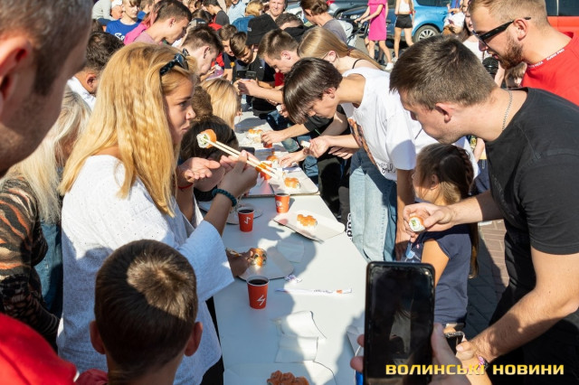 «Так прикольно – і наївся суші, я їх просто обожнюю, ще й сертифікат виграв», – радіє переможець конкурсу Назар.Тим часом процес випікання добігає кінця. Юні дегустатори, ковтаючи слинку, терпеливо чекають, коли ж уже можна буде спробувати улюблену випічку.Один з працівників Pronto Pizza бере рулетку. Усі стежать за його рухами, затамувавши подих. 34 метри 20 сантиметрів! Рекорд Луцька з випікання найдовшої піци встановлено! Тепер можна й дегустувати. Шматки ароматної випічки розлітаються вмить. Усі наминають і нахвалюють.«Смачна, ароматна, тане в роті. Думаю, будемо тут замовляти», – каже лучанин Юрій, який завітав на свято з дружиною і дітками.«Дуже класна піца! І начинка що треба, і тісто, я з’їв усе до крихти», – додає Назар, який цього дня переміг у конкурсі з поїдання суші.Після дегустації Микола Федеркевич перерізав символічну червону стрічку й заклад було урочисто відкрито.