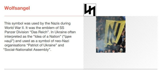 «Як це не прикро, але це є факт, що ультраправі організації – дуже активні на стадіонах, - йдеться у анотації до посібника. - Вони розповсюджують ненависть, використовуючи футбол як засіб суспільного розподілу. В цьому посібнику проілюстровані символи, які використовують на стадіонах ультраправі організації, щоб здійснити акти дискримінації, використовуючи символи націоналістичних організацій і рухів.