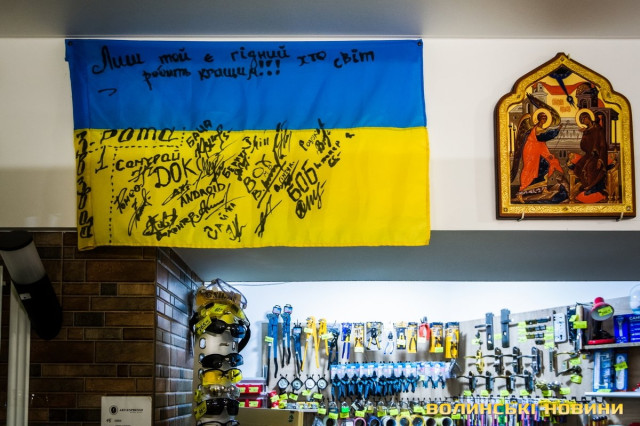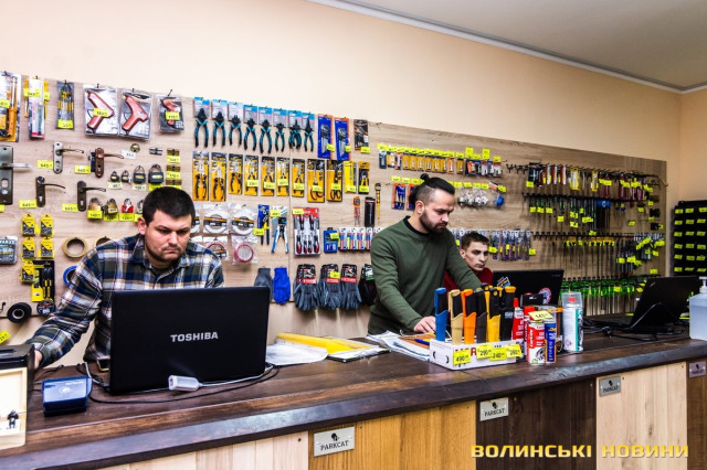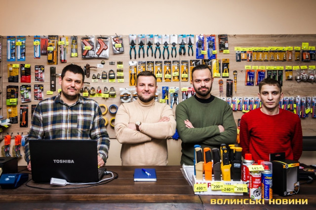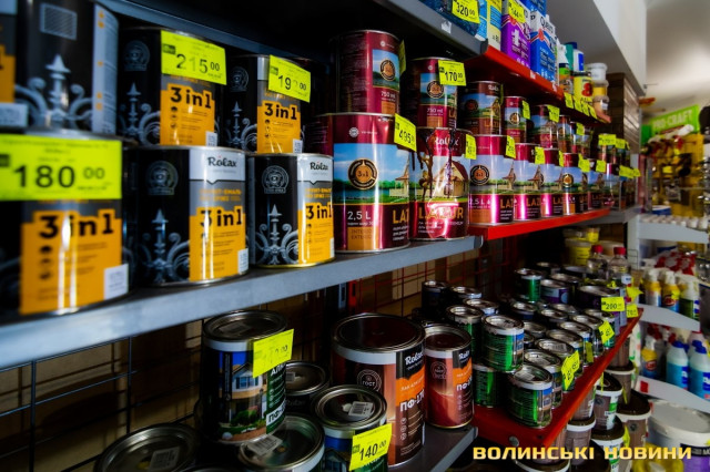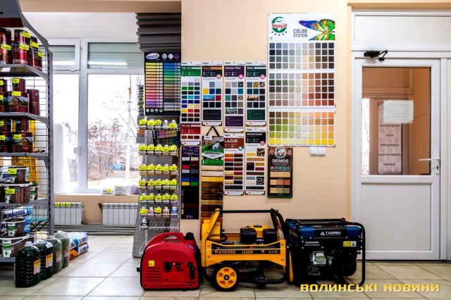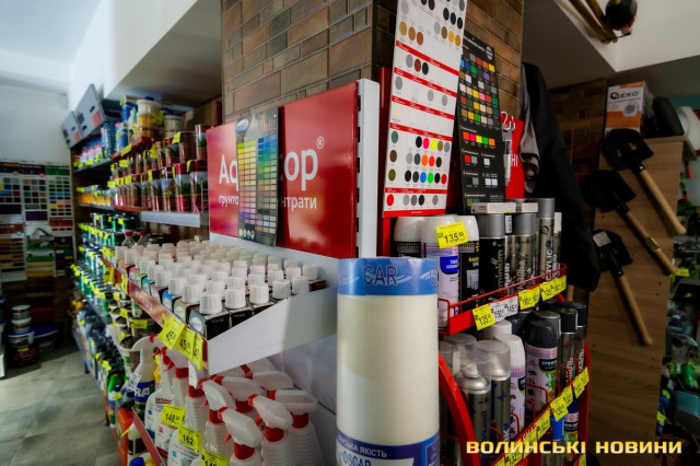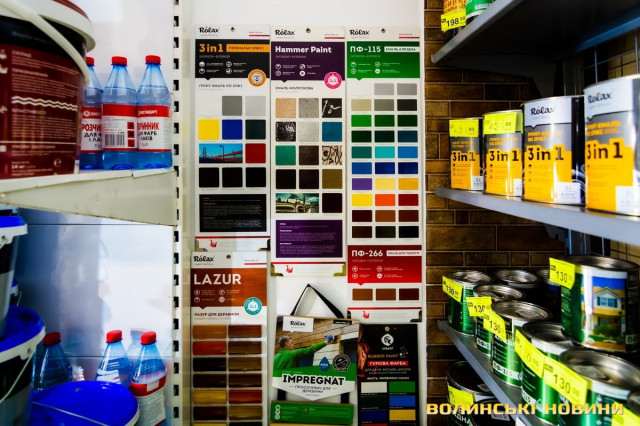 Є тут і затребувані в нинішніх умовах постійних відключень світла портативні газові плитки: безпечні та сертифіковані. А також – туристичні, одну з яких Анатолій з Олександром перевірили самі в польових умовах під час ротації.У магазинах – великий вибір різноманітних фарб. І знову ж таки – акцент роблять на якості та перевагу віддають вітчизняному виробнику.«Ці фарби виготовлено за німецькими технологіями на європейському устаткуванні. Вони направду дуже хороші. Щоправда, нашого покупця трохи важко привчити до того, що якісне – не обов’язково імпортне. Але ми це робимо, – усміхається Анатолій. – От, наприклад, фарби, які є в нашому магазині, виготовляють у Дніпрі (була ще лінія в Херсоні, але зі зрозумілих причин вона зараз не працює), а склади наразі – у Луцьку».